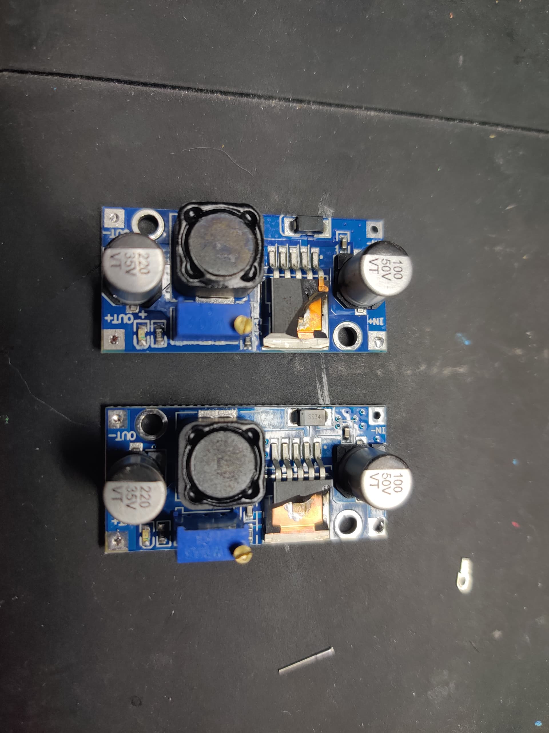 But yeah, I also tried another similar module I forgot I had, the correct board without the HW-411 REV, but a JM08RP LM2596S-ADJ. That one too doesn’t work, just draws as much current as it can. Those modules are definitely too much trouble even for a small test rig. You need the exact specific version from vendors who frequently switch components.