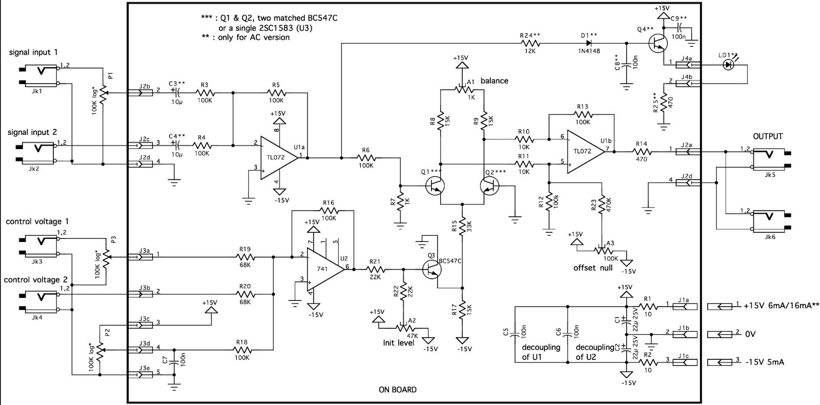 One side note: Given that both schematics are pretty much just redraws of the YuSynth schematics, and that you have made them publicly available, it would be courteous to add the URLs for the originals and label the schematics as Yves Usson’s work, rather than for instance “AdamDynamic VCA-001” which makes it look like you’re trying to take credit for the design. Not your intention I’m sure, but it’s not good when schematics get passed around without attribution to the people who created them.