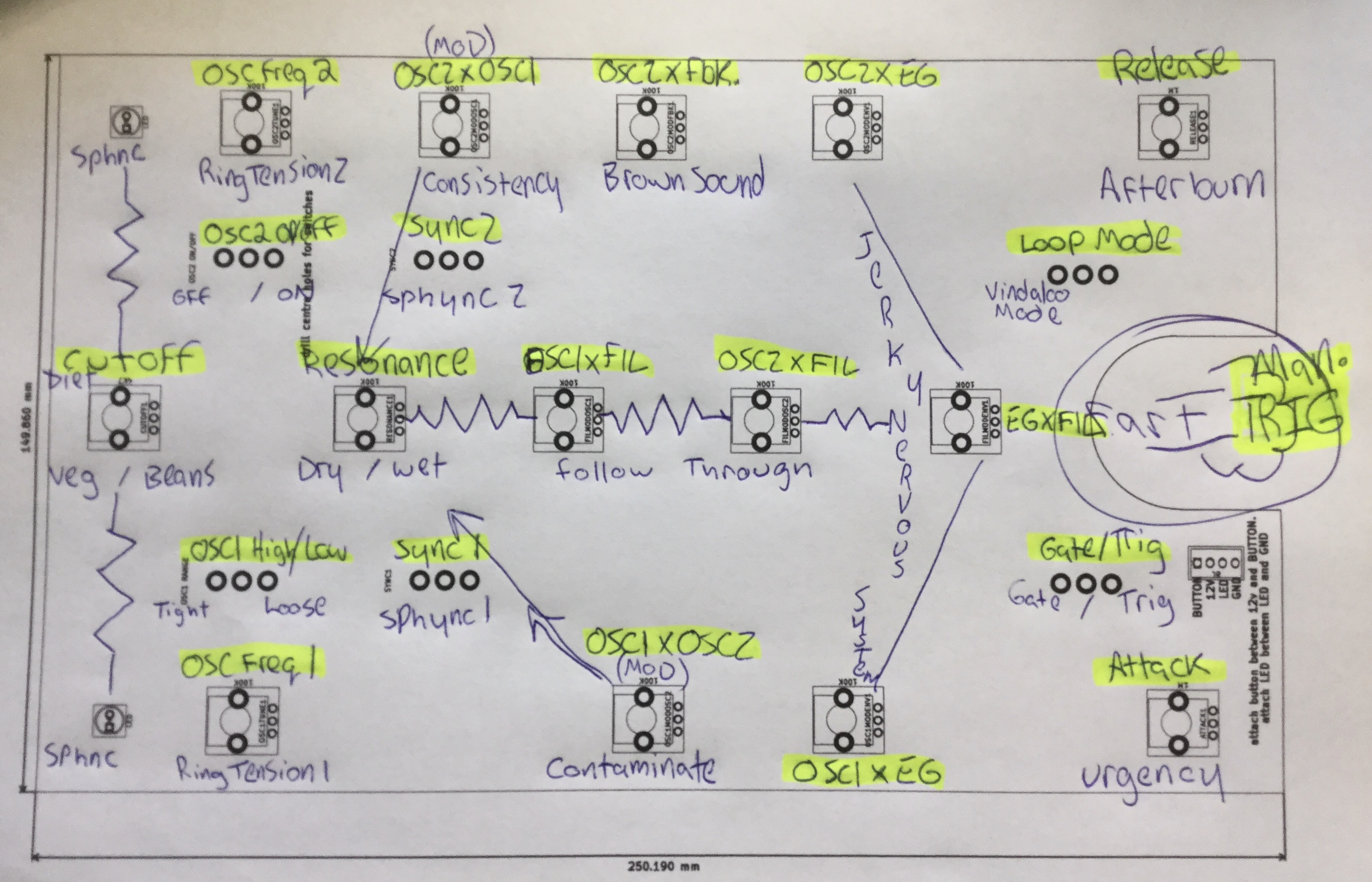 I was considering moving Attack and OSC1 Freq above the pots instead of below. OR moving attack to the inside of the pot like OSC1 Freq.