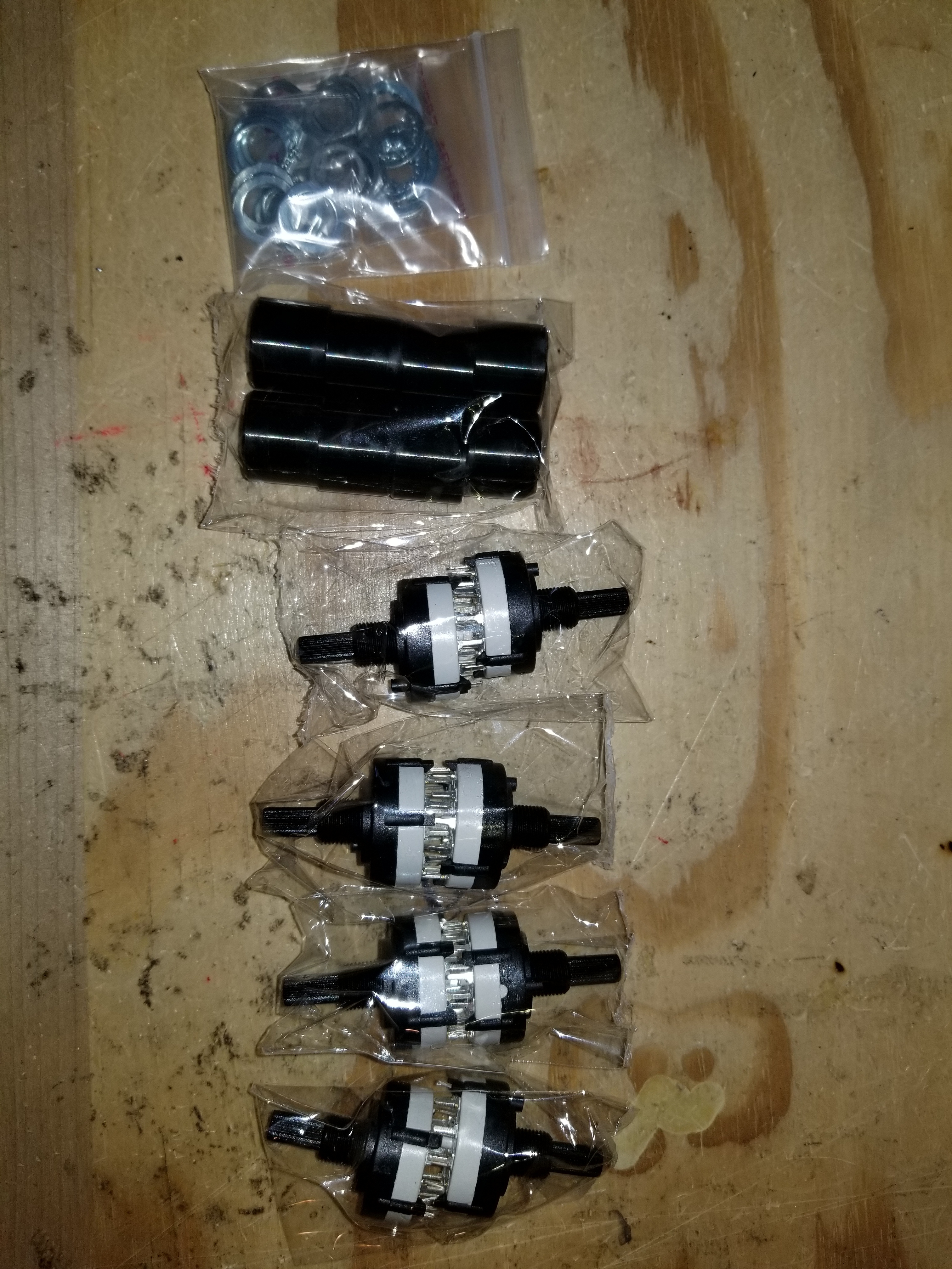 well look what showed up today after 2 1/2 months wait . of course I had reordered them and yesterday after only a week and a half wait from Tayada / DHL I received the second set . oh well guess I will have some extra for future projects . now I just wish the 10k pots I ordered from Thonk 2 1/2 months ago would show up , the shit part is that they were tracked to my country 20 miles from my house 2 months ago and thats were they have been sense .