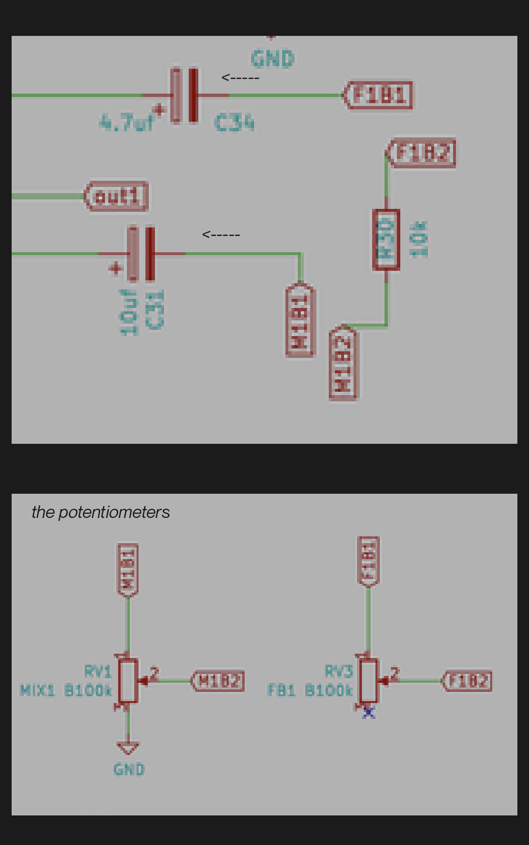 yes ! so shouldn’t one of the two caps here be mounted the other way ? So the current can flow trough the potentiometers ? It’s seems like no current can reach the potentiometers. And I trust this schematic more than myself, so I feel there is something I still don’t understand.